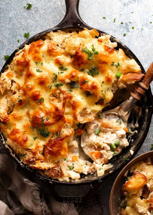 Images (from left to right): 1. Maple Glazed Spatchcock Turkey image by Megan McKeehan and recipe by Jess Larson for Plays Well With Butter 2. Chai Pumpkin Pie with Maple Whipped Cream image/recipe by Half Baked Harvest 3. Garlic Bread Topped Leftover Turkey Pot Pie image and recipe by RecipeTin Eats